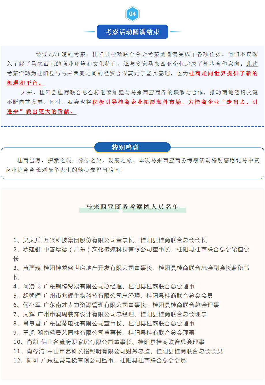 “桂商出海,扬帆远航,携手共筑桂商新纪元!”桂阳县桂商联合总会马来西亚商务考察活动圆满成功,共绘经贸合作新篇章!