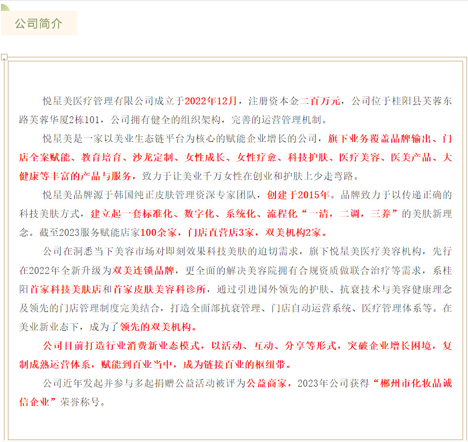 企业名称:郴州悦星美医疗管理有限公司