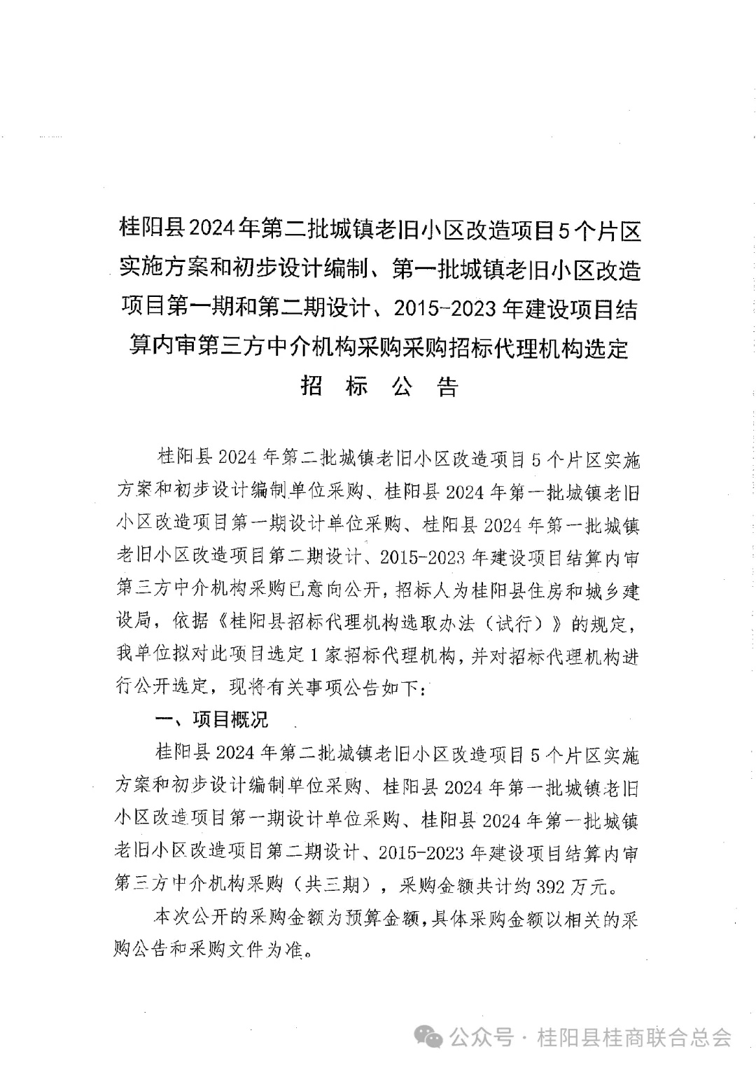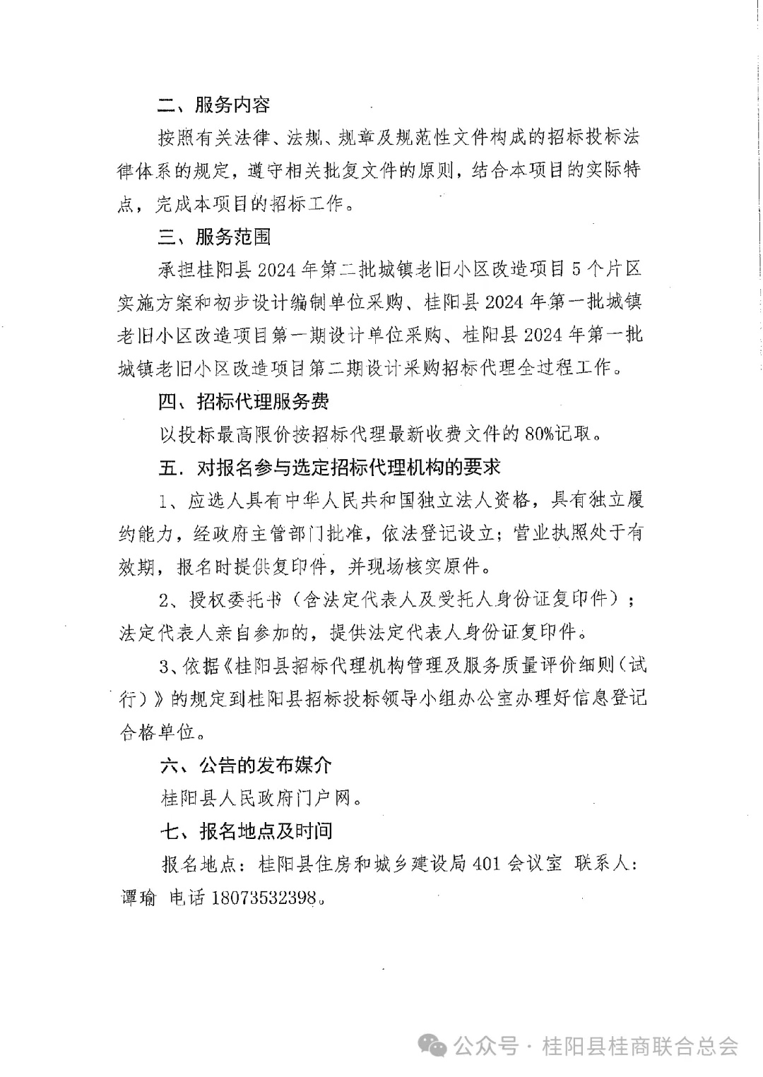原标题:《桂阳县2024年第二批城镇老旧小区改造项目5个片区实施方案和初步设计编制、第一批城镇老旧小区改造项目第一期和第二期设计、2015-2023年建设项目结算内审第三方中介机构采购采购招标代理机构选定招标公告》